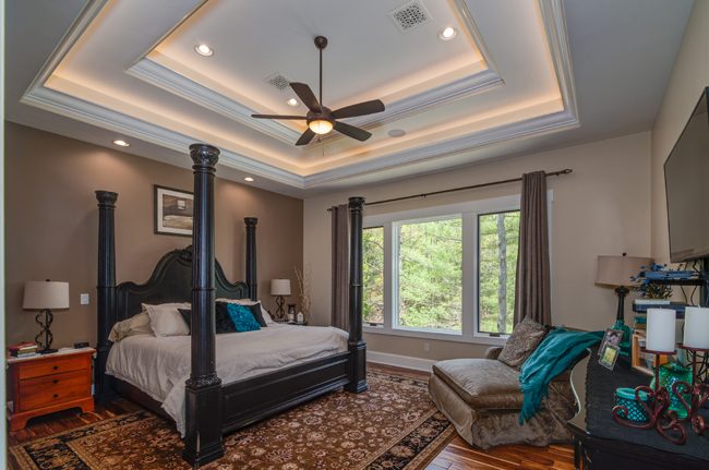 Built by Judd Builders in 2012, this home sits on 4 acres in the beautiful Cane Creek Valley south of Asheville, NC. It’s a 7,200 square ft luxury home featuring 5 bedrooms, 5 bathrooms, and 2 half baths. The Asheville custom home is situated at the end of a private road surrounded by open pasture. It’s a craftsman style home with rustic touches like exposed beams and trusses, stone fireplaces, and cedar shake.